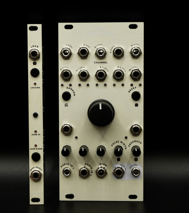 A filter module based on a resonant EQ. By turning a knob or using wind CV, the sound sways across ten channels like wind-blown strings. Each channel can be toggled on or off, locked in place, or selected randomly. A feedback circuit enables a ping function.